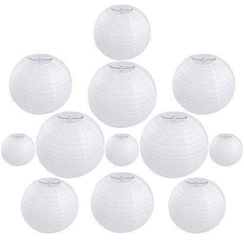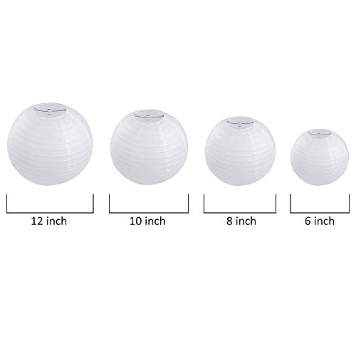 Vastar 12 Packs White Round Paper Lanterns with Assorted Sizes for Party Decorations, Party Lanterns for Decorating Wedding, Festivals, House or Office with 4 Different Sizes