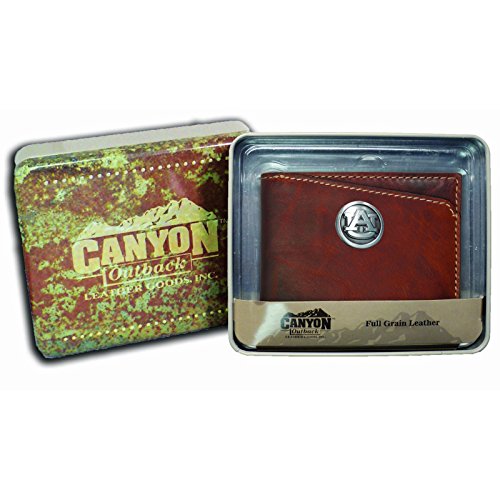 -. Binding : Apparel -. Brand : Canyon Outback -. Department : unisex-adult -. Feature : Full Grain Pull-up Cowhide Leather Construction / Eight credit card slots, Bi-fold design with fold out ID holder and window / Full length money sleeve / Product Dimensions: 4.5 inch L x 0.5 inch W x 3.3 inch H / 4.5x0.5x3.3 -. Label : Canyon Outback -. Manufacturer : Canyon Outback -. Model : CY701-Bi-fold Brown Wallet-auburn Tigers -. PackageQuantity : 1 -. ProductGroup : Apparel -. ProductTypeName : LUGGAGE -. Publisher : Canyon Outback -. Studio : Canyon Outback -. Title : Canyon Outback Bi-Fold Brown Wallet-Auburn Tigers