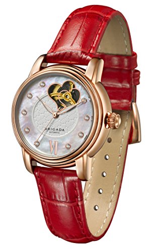 -. Binding : Watch -. Brand : BRIGADA -. Department : Womens -. EAN : 0190203897436 -. Feature : Automatic movement with analog display / 34 mm rose gold-plated case, hands/ markers with mineral glass dial window / Round watch with textured white dial and rhinestone indices; the inner movement can be seen directly from transparent watch back cover / South Africa imported genuine calfskin leather band with metal buckle closure / Slightly water-resistant: generally, suitable for hands washing and rain splashing, but not swimming or bathing -. Label : Brigada -. Manufacturer : Brigada -. Model : BJDMW-6007 -. MPN : BJDMW-6007L-1 -. PackageQuantity : 1 -. PartNumber : BJDMW-6007L-1 -. ProductGroup : Watch -. ProductTypeName : WATCH -. Publisher : Brigada -. Studio : Brigada -. Title : Lady Retro Unique Hollow Automatic Mechanical Watch with Leather Band -. UPC : 190203897436