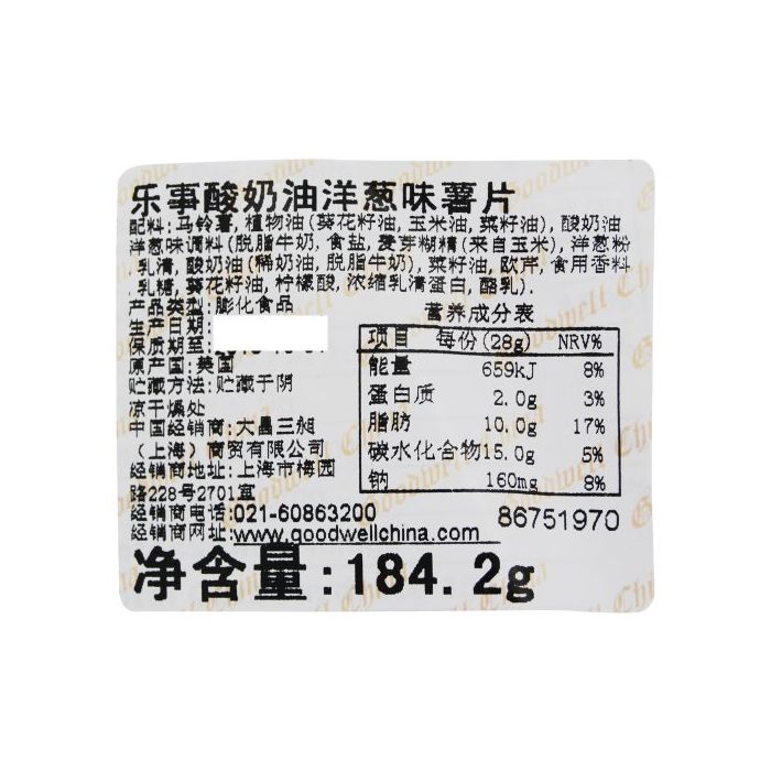 원본상품명: ジャパンフリトレ? USレイズ サワ?クリ?ム&オニオン 184.2g