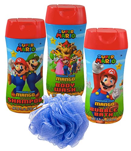 (UPD)/Bath/Bubble Bath/DIRECT FROM USA/Super Mario Brothers 4pc Bathroom Collection! Includes Body Wash, Shampoo, Bubble Bath Bath S...