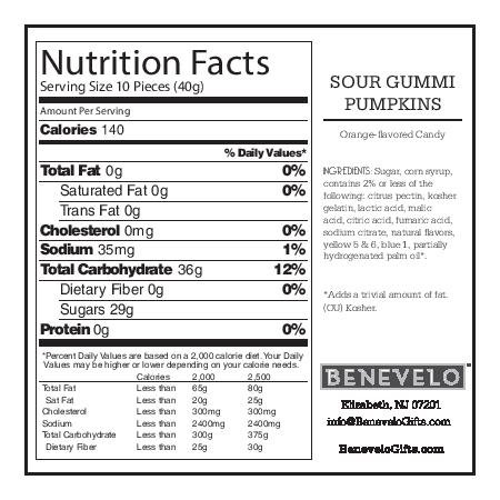 - Feature : PRODUCT COMES IN OUR BEAUTIFULLY DESIGNED TRADEMARKED "BENEVELO" BRANDED BAGS! / Orange flavored gummi candy pumpkins coated in a mouth puckering sour sugar blend. / Perfect for Autumn, Halloween, or any time of the year! / Halloween Candy, Halloween skeletons, Halloween ideas, bulk Halloween candy, halloween candies, candy eyes, body parts candy, halloween candies, candy halloween, Halloween Gummi Candy, Autumn Gummy Candy, Pumkins, candy pumpkins, pumpkin candy, / 2 Pound Benevelo Bag (OU) Kosher.