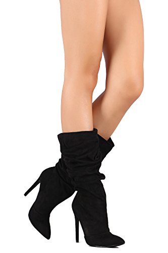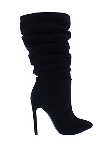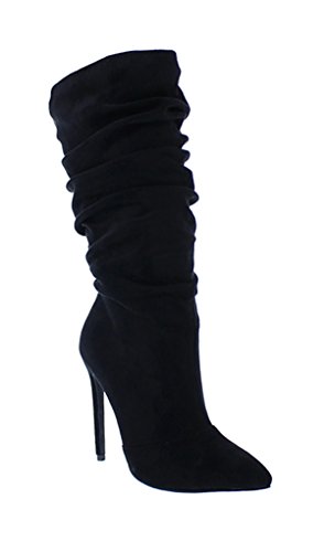 Product DescriptionThese?boots?are midcalf style, featuring a pointy toe on a single sole stiletto heel. Slouchy shaft lightly padded lining.0