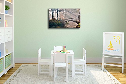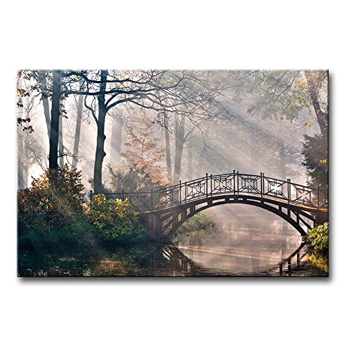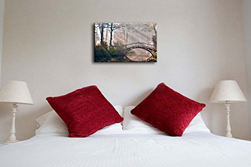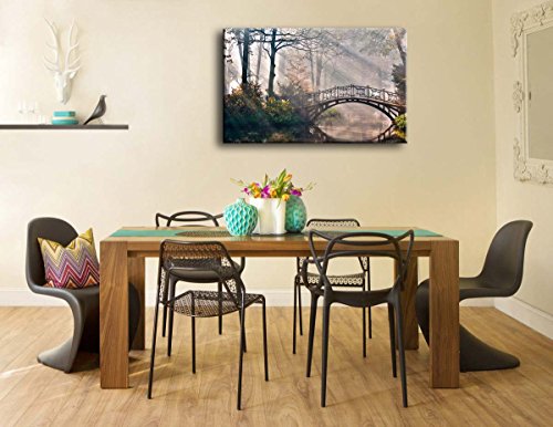-. Title : Canvas Print Wall Art Painting For Home Decor Tranquil Autumn Forest With River Bridge And Morning Light Rays Sunshine In The Netherlands Paintings Modern Giclee Stretched And Framed Artwork The Picture For Living Room Decoration Landscape Pictures Photo Prints On Canvas