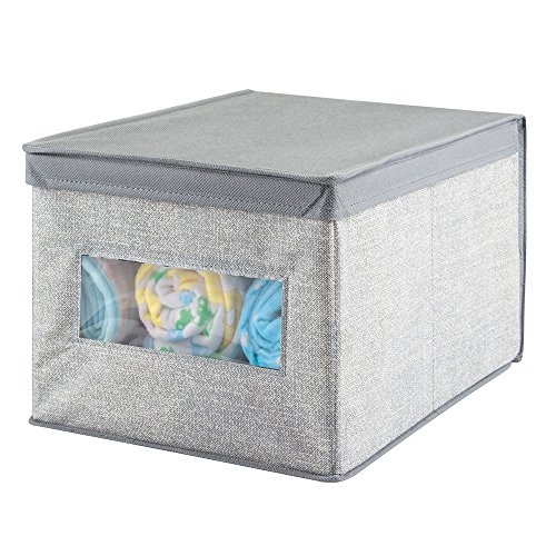 The mDesign Fabric Accessory Organizers keep your drawers, shelves, closets, and dresser tops neat and organized. Use for baby clothes, onesies, burp cloths, linens, rattles or other nursery accessories.