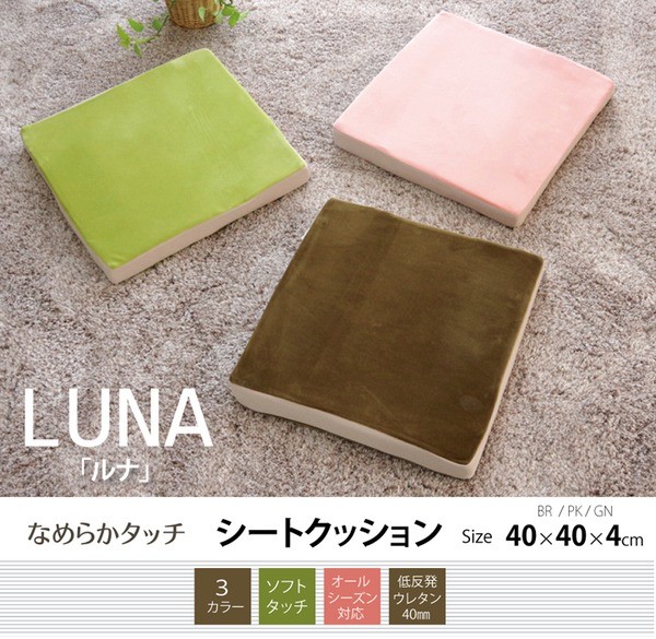 【商品名】クッション 低反発 マイクロファイバー 無地 『ルナ シート』 グリーン 約40×40cm(中=低反発ウレタン40mm)