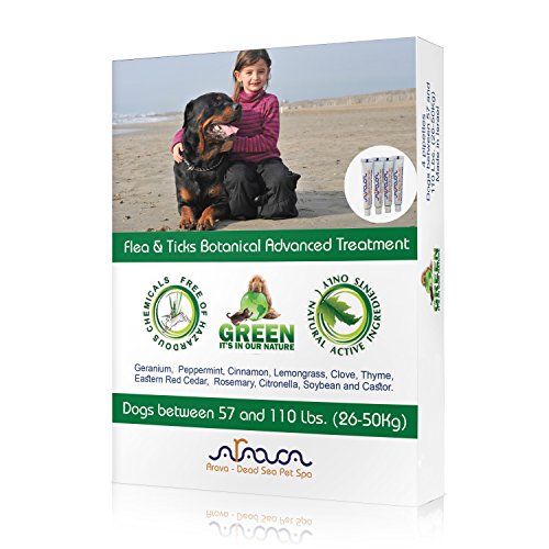 -. Feature : THE BEST NATURAL FLEA AND TICK PREVENTION FOR DOGS - With enhanced protection that outlasts flea and tick collars, our flea and tick botanical drops are safe for dog's coat and skin thanks to 9 essential natural and 2 basic oils. 30 DAYS RISK-FREE GUARANTEE - Arava Dead Sea Pet Spa has more than 20 years experience in pet care natural products. So why think twice? Order now and get a 100% risk-free guarantee for 30 days. / NATURAL REPELLANT - The most effective dog flea treatment developed with essential oils, Arava flea and tick Squeeze-On can protect your dog from flea and tick bites. IMPORTANT: In some cases, it takes few days before the treatment works well, because the essential oils must be absorbed into the skin. When the flea and tick treatment starts, the ticks will usually fall first, and then the fleas will follow. THE ARAVA FLEA AND TICKS TREATMENT CONTAINS ONLY ESSENTIAL OILS! There are no extracts. / HOW IT WORKS: After applying the natural oils drops on your dog's skin, wait until it's absorbed. Some of the fleas and ticks fall off immediately, but some will try to stay. Once they bite the skin absorbed with the natural oils, they will die. IMPORTANT! Maximum results are achieved by not only treating the pet, but also its environment like the house and the yard. / REPEL, PROTECT & DEFEND - Arava botanical drops are for are for big dogs (57-110 lbs), nonhazardous, environmentally friendly, and can repel nearly 500 different species of fleas, ticks, chewing lice, larvae and other insects. The effect of one tube lasts for a month and it's safe for dogs who lick treated areas. / PET & FAMILY SAFE FORMULA - Superior to chemical-based flea and tick repellant collars drops or spray, our botanical formula is not only effective, it's safer for pets, children and adults of all ages. HELP US PROTECT ANIMALS - Purchasing Arava products is not only good for your pet, it also helps animals everywhere. Part of each sale goes to help protect the rights, welfare and habitats of animals. For more information, please contact us!