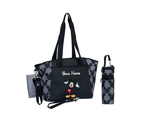 This Diaper bag has an eye catching design and is extremely functional for toting your baby's essentials around. Developed with organization in mind this bag has many pockets here you can keep your baby's bottles, diapers, wipes, and clothing organized and compartmentalized. By storing baby's bottles in the interior, or side bottle pockets, you'll never have to worry your baby's bottle spilling or making a mess. This Diaper Bag features a removable changing pad to match the interior. Comfortable and sturdy shoulder straps makes toting your baby's goods comfortable, convenient, and stylish. The world's most iconic characters, Disney's Mickey Mouse, is highlighted on this fashionable and functional diaper bag. Kids and adults love these timeless characters that are always on trend. Everyone relates to an always fun-loving Mickey Mouse.Feature