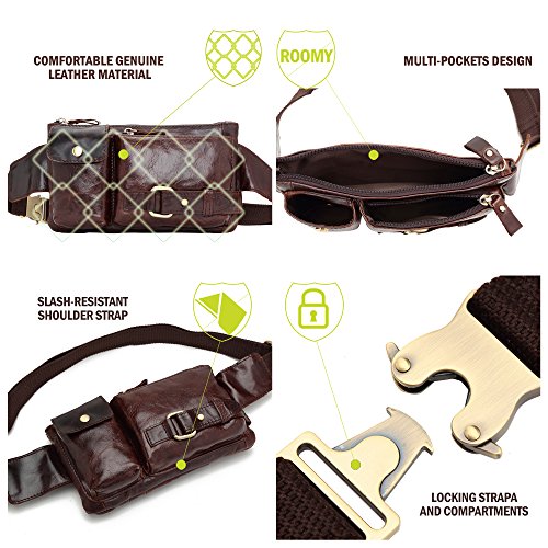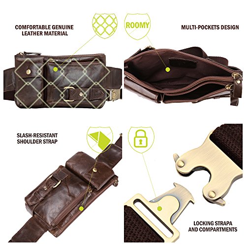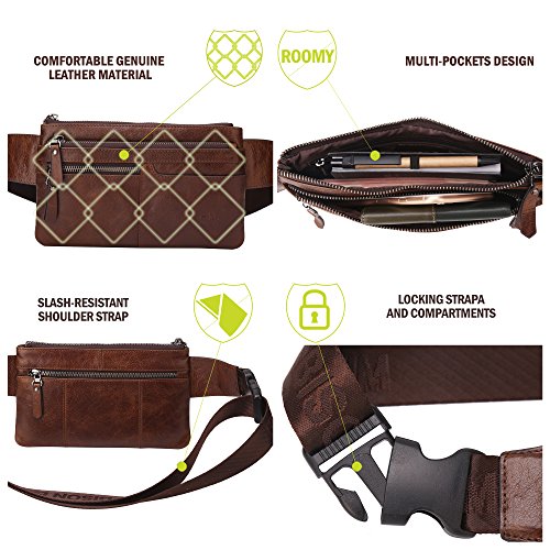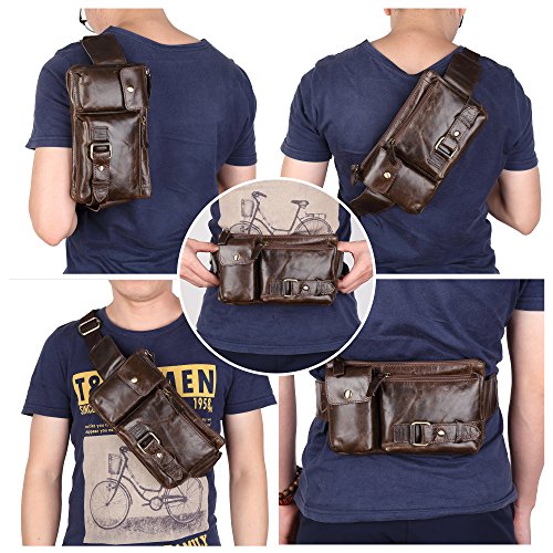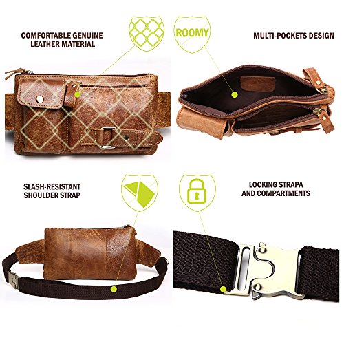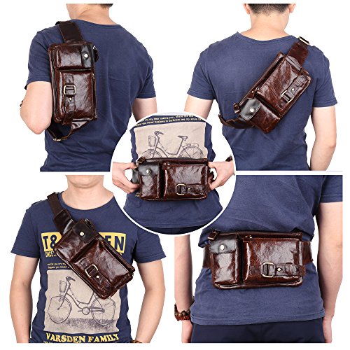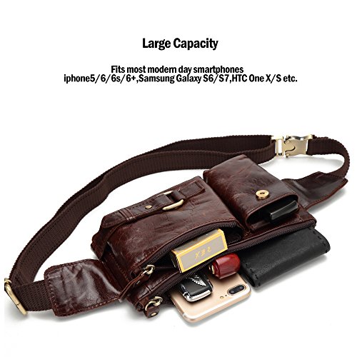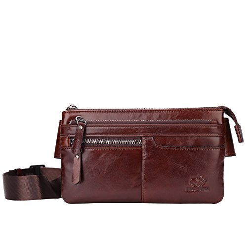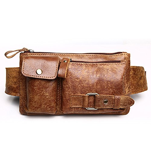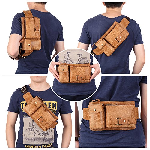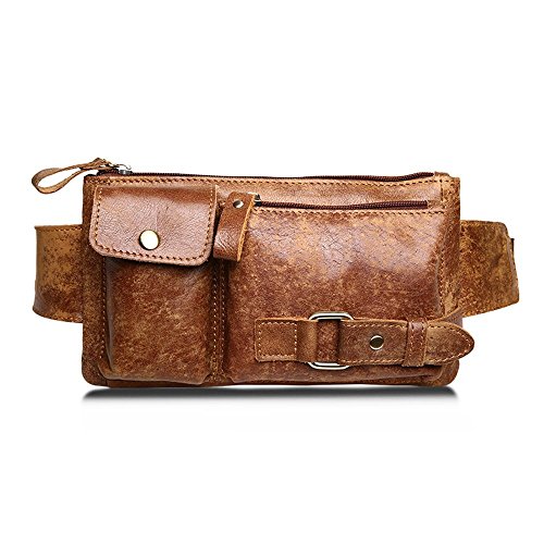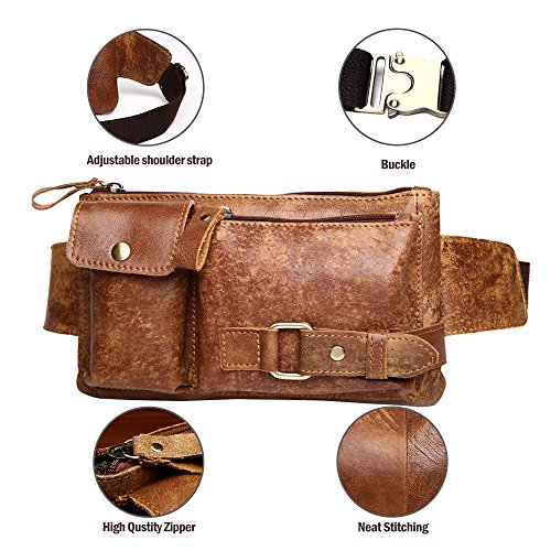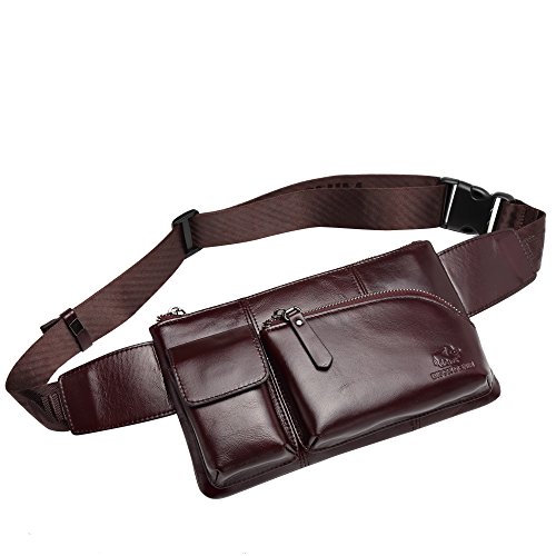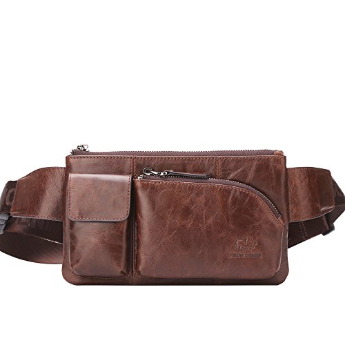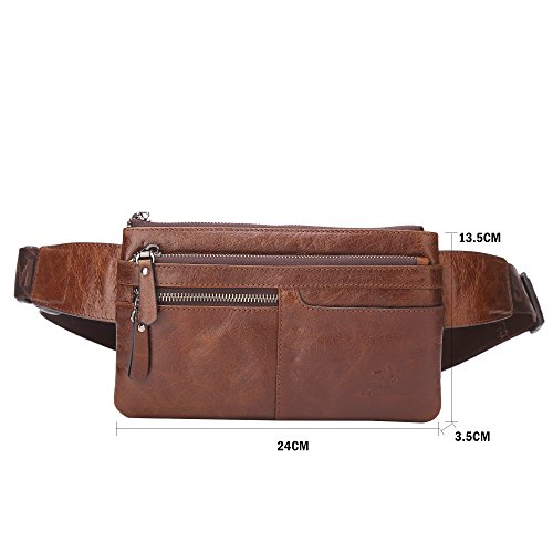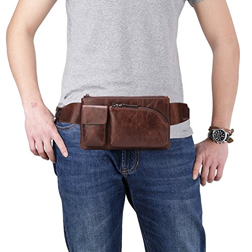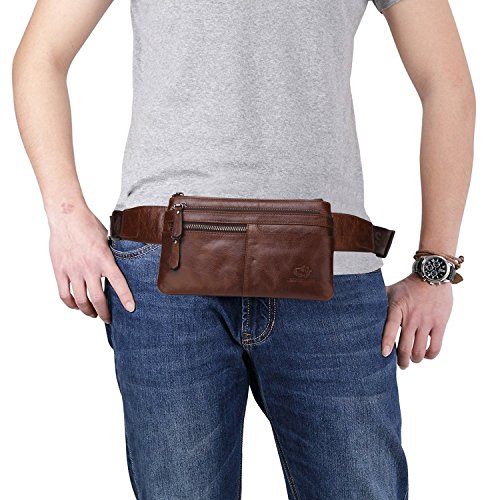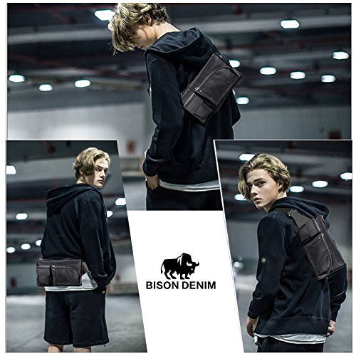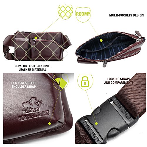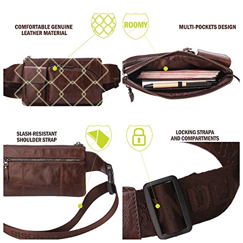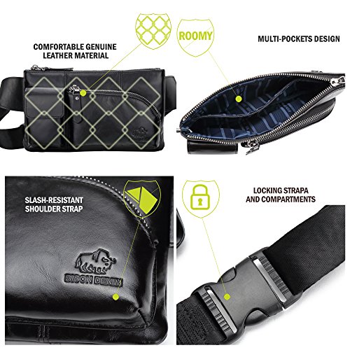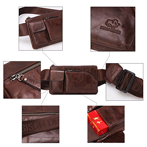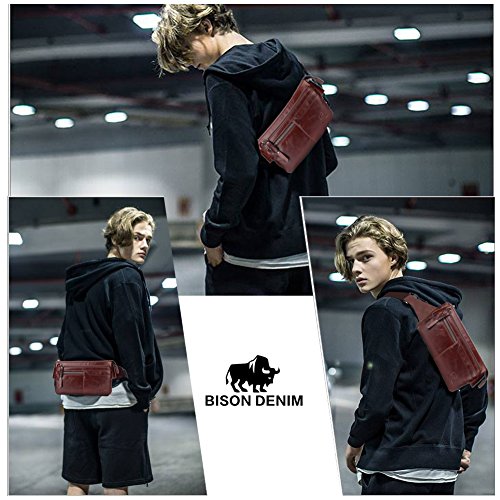 | BISON DENIM Classic Leather Waist Pack Fanny Packs Sport Pouch Travel Hiking Bum Bag |