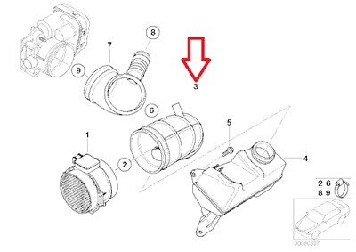 - Feature : BMW Genuine Intake Boot - Air Mass Sensor to Air Boot (Elbow Tube) / For cars without ASC+T. / Please see Product Description below for vehicle compatibility. / Manufacturer Warranty: 24000 miles or 2 years / Quantity within package: 1