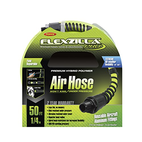 Flexzilla Pro Air Hose, 1/4 in. x 50 ft., Heavy Duty, Lightweight, Hybrid, ZillaGreen - HFZP1450YW2