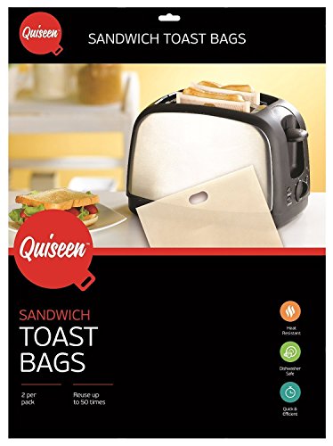 Use the QUISEEN TOAST BAGS to cook grilled cheese sandwiches quick and efficiently in your regular toaster. With no mess and no crumbs, your appliance will remain clean and the sandwich will retain its full flavor. The Toast Bags can be used to reheat pizza, chicken nuggets, fries and more. The Toast Bags are large, non-stick, easy to clean and reusable.Feature