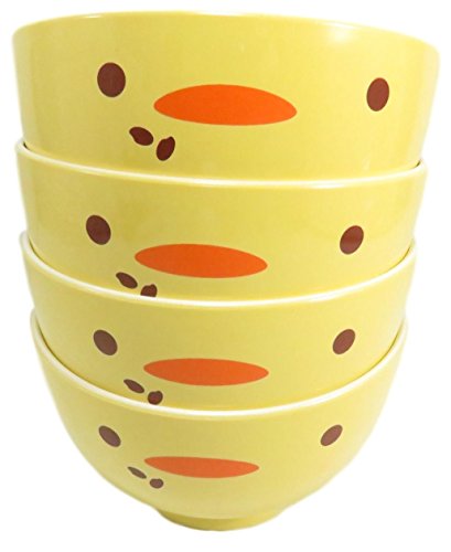 THE SPECIFICS: Set of four bowls with a fun chick design measuring 4.1" x 2.5" made of a lightweight plastic with a 10 oz capacity.