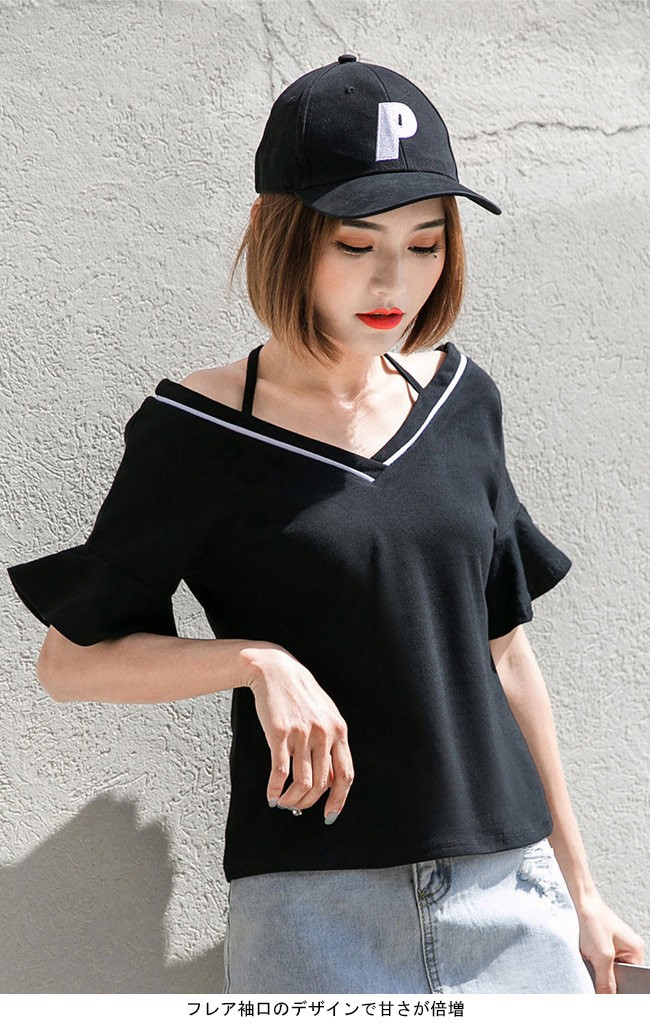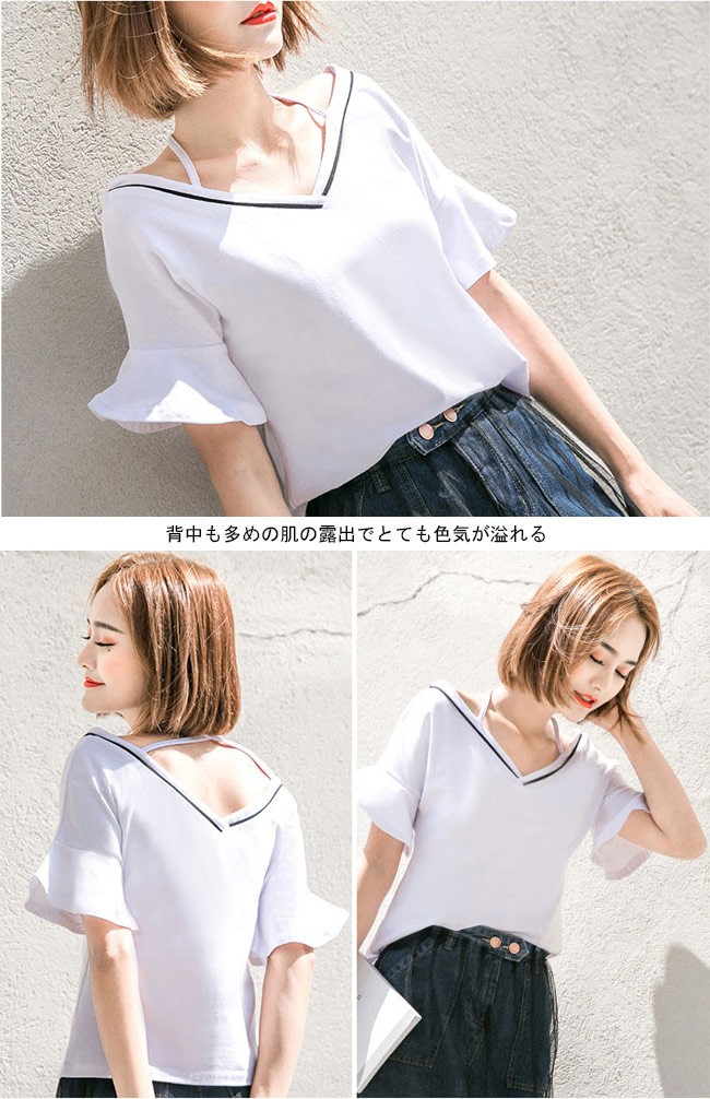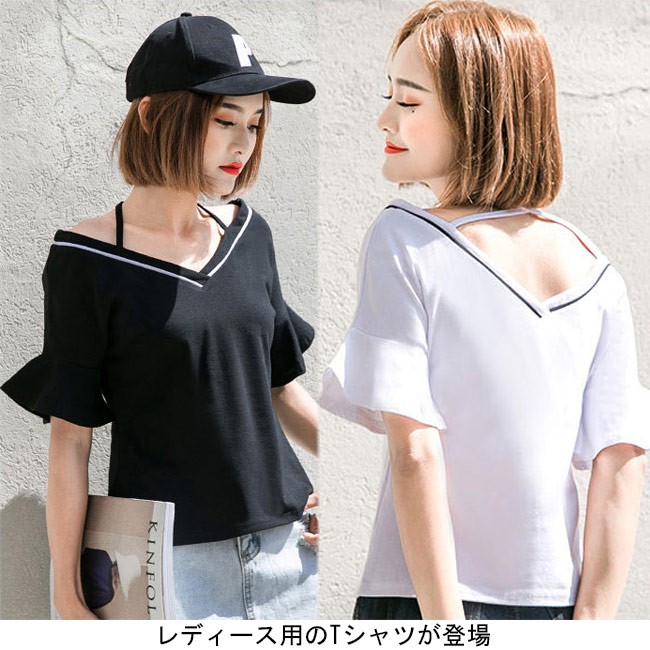| 商品名 | レディース 半袖Tシャツ Vネック 女性用 Tシャツ オフショルダー ベルスリーブ カットソー 五分丈袖 薄手 夏物 セクシー |