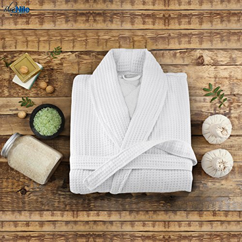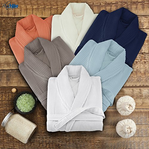 Blue Nile Mills graciously brings you one warm, soft, and relaxing high quality long-staple cotton bath robe. These terry robes are available for both men and women in appealing solid color selections. Sizes come in large, medium, small, and extra large. Rest in comfortable fabric fashioned with a belt, two pockets and sleeves made easy to fold back for style and convenience.