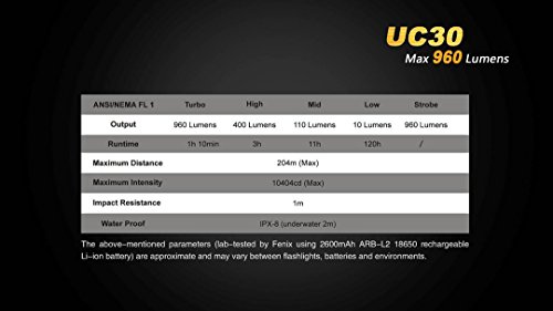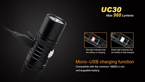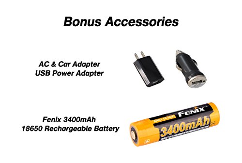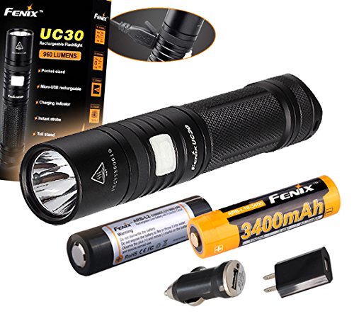 3400MAH 18650, FENIX UC30 960 LUMENS CREE XM-L2 LED RECHARGEABLE LED FLASHLIGHT W/ 2600MAH 18650, HOLSTER, BUILT-IN USB CHARGER, AND BONUS FENIX 3400MAH RECHARGEABLE BATTERY, LUMEN TACTICAL AC CAR POWER ADAPTER