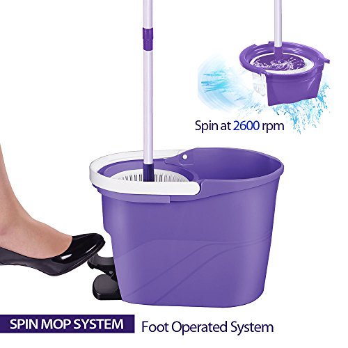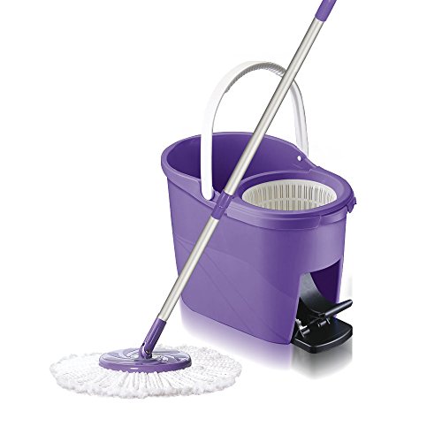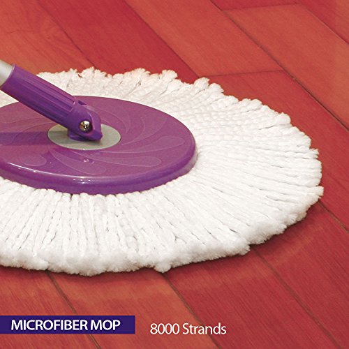 Included: Deluxe bucket, rotating spinner to wring water from mop, handle and extension stick which disassembles for space saving compact storage, anti splash guard, and a prime microfiber mop head.