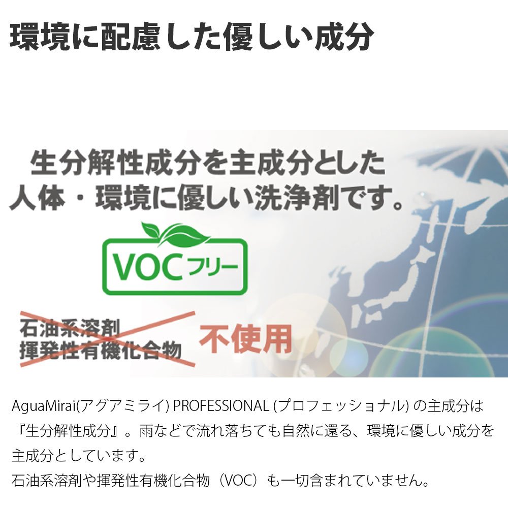 The main ingredient of AguaMirai PROFESSIONAL is "biodegradable component".