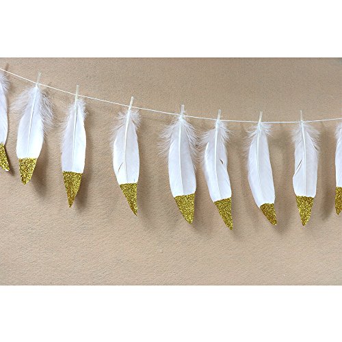 Feather Garland Decoration Glitter Gold Banner for Bedroom Bohemian Decor Teepee Decorations Baby Shower Party