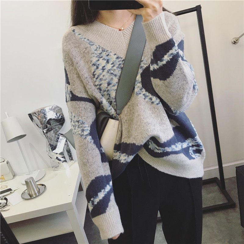喜欢这件抽象几何针织毛衫, 撞色美丽的效果很是不凡,简直像行走在身上的艺术,打破烦闷调调。