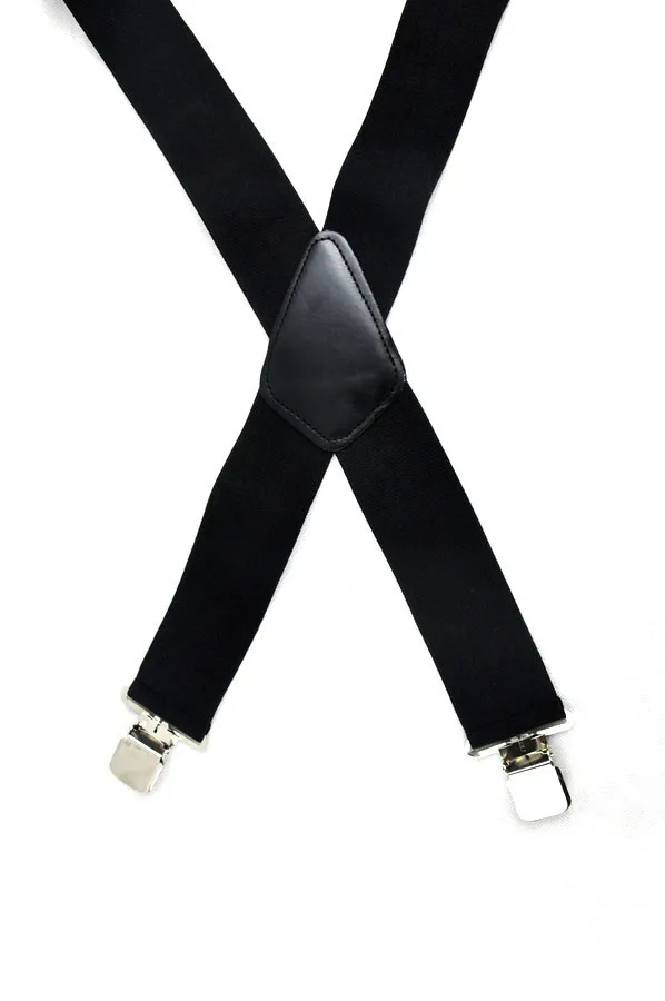 - 1 x 50mm Wide Mens Gentles Braces Plain Heavy Duty durable Suspender Elastic Black
