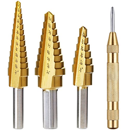 Vastar Titanium Step Drill Bit Set, 3-Piece Set & Automatic Center Punch