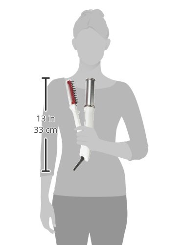 Feature : Titanium barrel and curved tourmaline ceramic floating plate / Dries, straightens, curls, adds volume and shine / Safely dries the hair by whisking water out of the hair strand and venting it away / Multiple heat settings up to 410 degrees Fahrenheit / 30 second rapid heat-up and auto safety shut-off