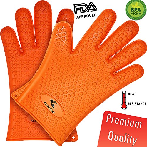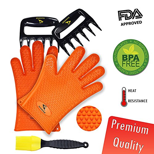 AssistChef BBQ Grilling Gloves Set with Meat Shredders and Soft Silicone Baster Brush