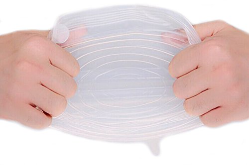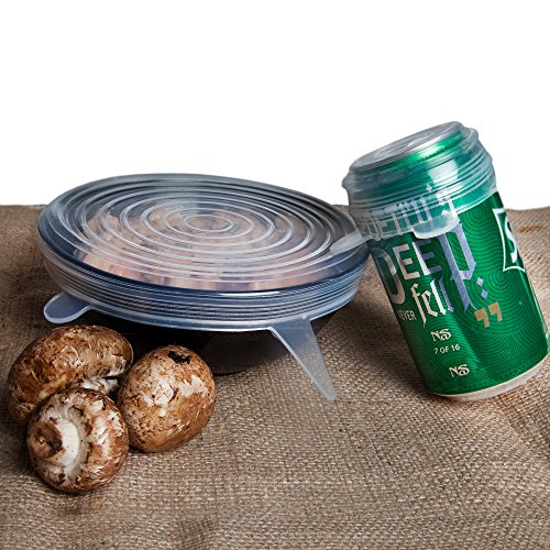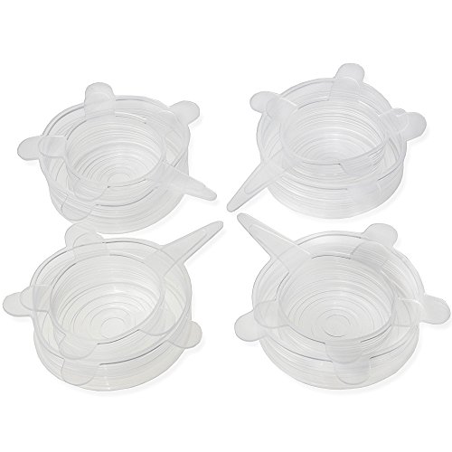 Silicone Lids 8 Pack, Stretchable, Reusable, Durable Kitchen Gadget, Dishwasher and Freezer Safe, Preserve Food (Clear/White, Normal Pack/Circular)