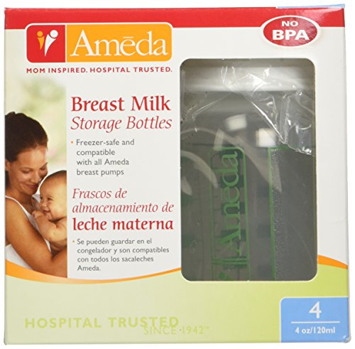 Ameda Breast Milk Storage Bottles, 4 Ounce, 4 Pack