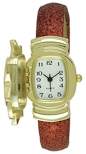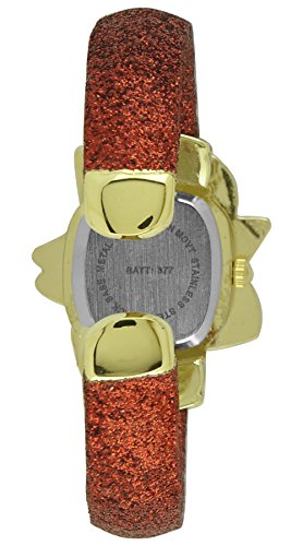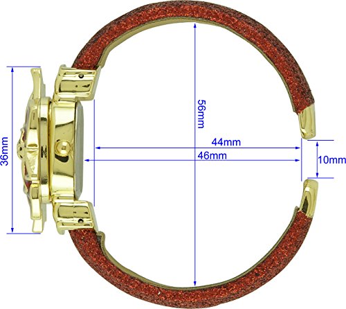 Celebrate the holidays with this colorful watch. A poinsettia design on a hinged lid hides the watch face. Red glitter polyurethane wraps the bangle cuff. Accurate Japanese quartz movement made by Seiko Nextage Inc.Feature