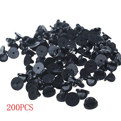 BronaGrand 200pcs PVC Rubber Pin Backs/ Pin Keepers for Tie Tack/ Lapel Pin (Black Color)