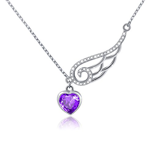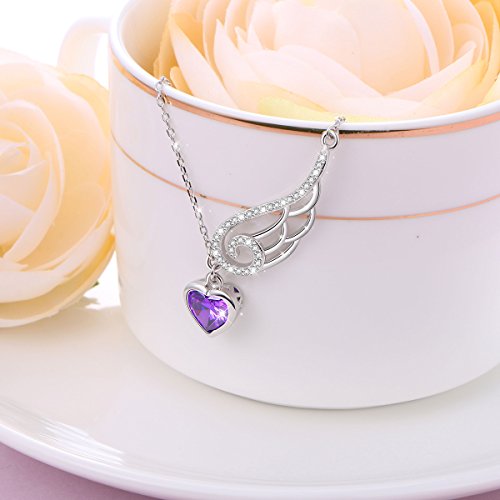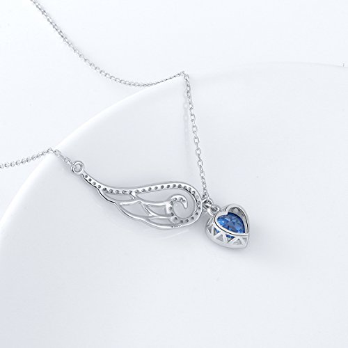 -. Title : 925 Sterling Silver Cubic Zirconia Guardian Angel Wing Heart Pendant Necklace for Women, 18"