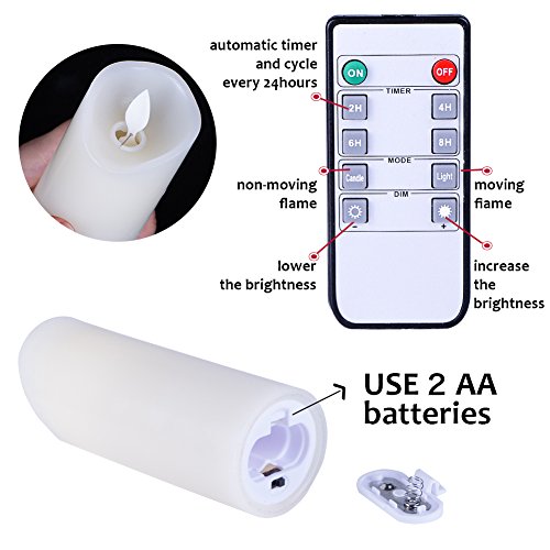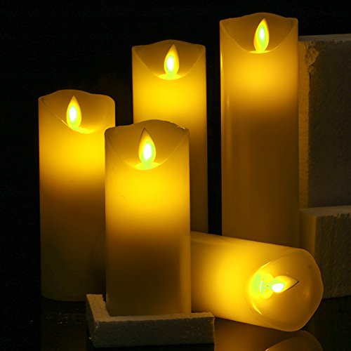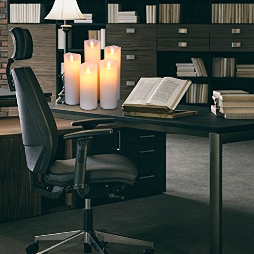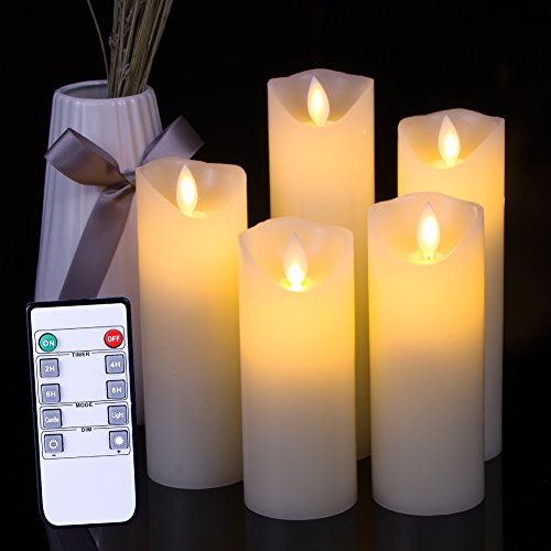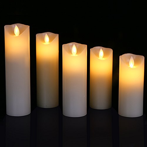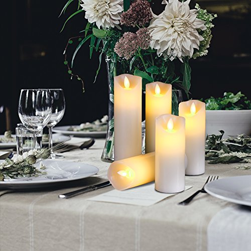 Flameless LED Candles Flickering pillar Candles Battery Operated Candles Unscented with Timer and Remote Set 5" 6" 7" 8" 9" Set of 5 Ivory Real Wax Pillar LED Candles with 10-key silicone Remote