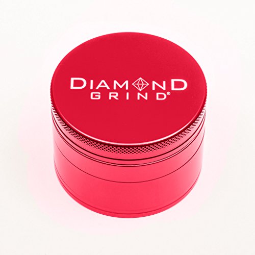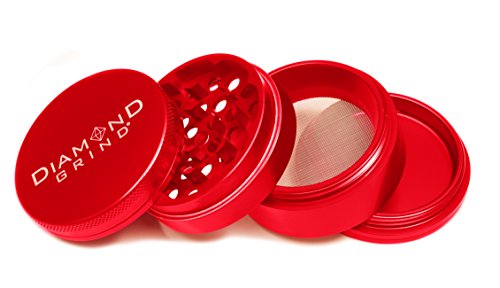 Diamond Grind 4 Piece Aluminum Herb Grinder with screen 50mm (2.00") RED