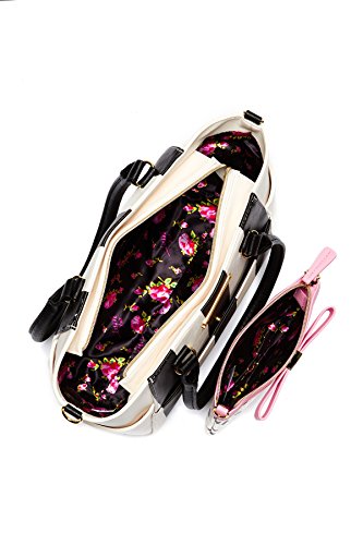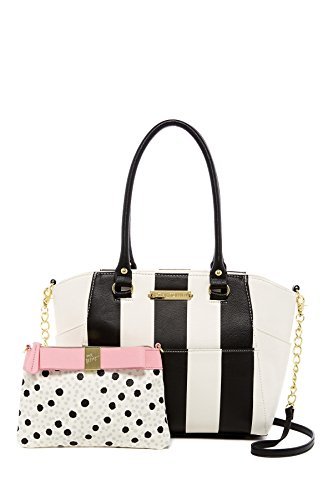 Betsey Johnson Hidden Treasure stripe satchel with Detachable zip bow pouch