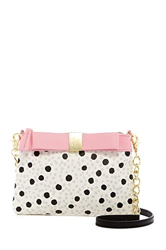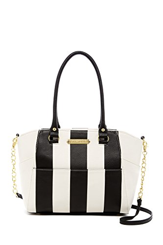 Betsey Johnson Hidden Treasure stripe satchel with Detachable zip bow pouch is constructed of faux leather with Dual rolled top handles - Single detachable partial chain strap - Zip top closure. Exterior features print details, 1 front slip pocket, and 1 detachable zip bow pouch while Interior features 1 zip wall pocket and 2 media pockets Approx. 9.25" H x 12" W x 5.25" D, 6.25" H x 9" W x 0.5" D pouch Approx. 8.75" handle drop, 23.25" strap drop - Dual rolled top handles - Single detachable partial chain strap - Zip top closure - Exterior features print details, 1 front slip pocket, and 1 detachable zip bow pouch - Interior features 1 zip wall pocket and 2 media pockets - Approx. 9.25" H x 16" W x 5.25" D, 6.25" H x 9" W x 0.5" D pouch - Approx. 8.75" handle drop, 23.25" strap dropFeature