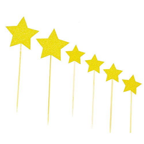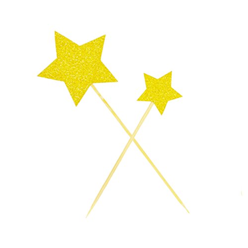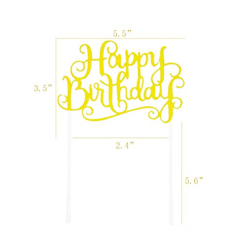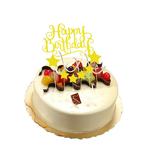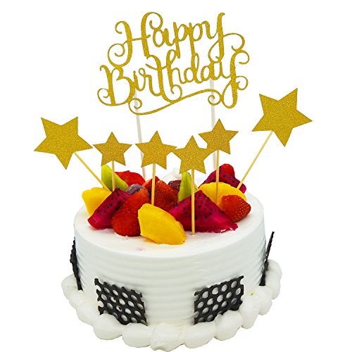 Ldoux Gold Glitter Pentacle Cupcake Toppers and Gold Glitter "Happy Birthday" Monogram Cake Toppers Picks Birthday Party Decorations Set