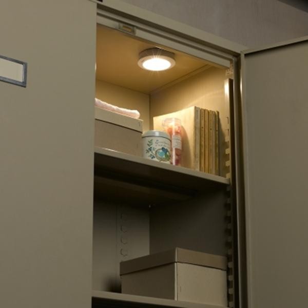 切り替えスイッチで3種類の消灯時間が選べます。簡単に移動できる乾電池式です。マグネット付きなので、スチールラックなどに付けて使えます。 |