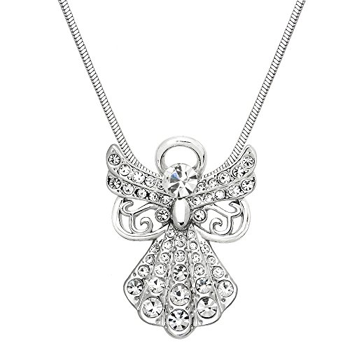 -. Title : Angel Pendant Necklace Rhinestone Crystal High Polished Rhodium J1465