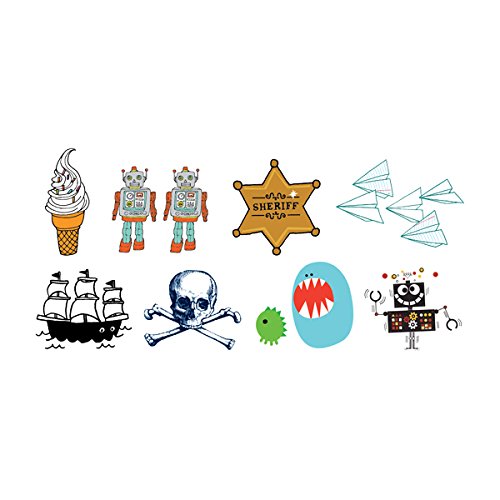 This set is a fun and bright collection of monsters, robots, and treats. There are 8 designs in each set and have been approved for any party.