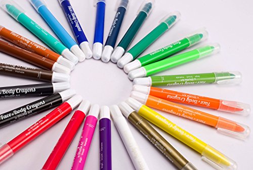 Unique design of pen holding face & body paint- Pen holding design makes your painting more easy and covenient. It’s time to say goodbye to the traditional face & body painting palette. Because children’s creation is the most precious point during their growing up, we need to catch it. In addition, flexiable and twist function makes no waste. Cap off design also keeps each face & body painting crayons always alone, no worry about color crossing.