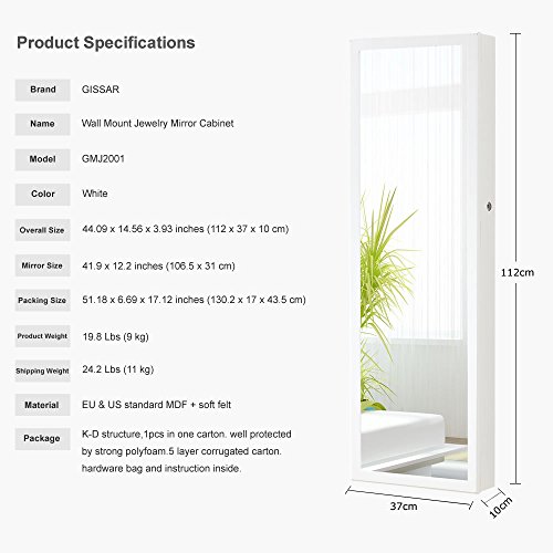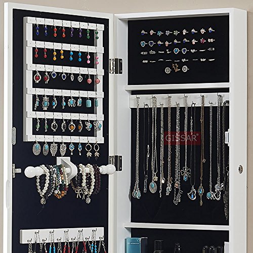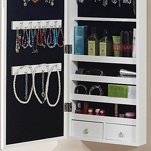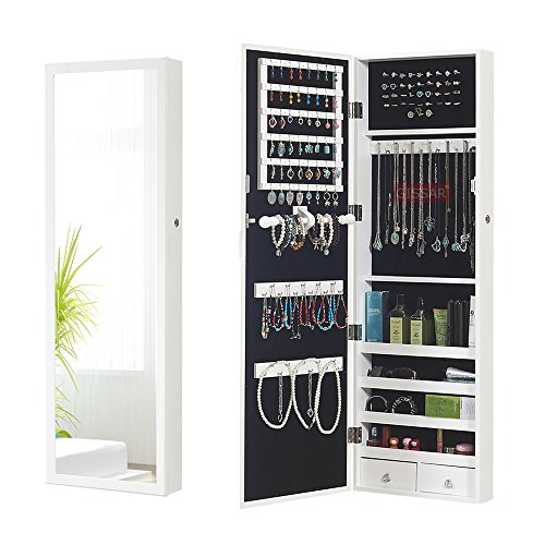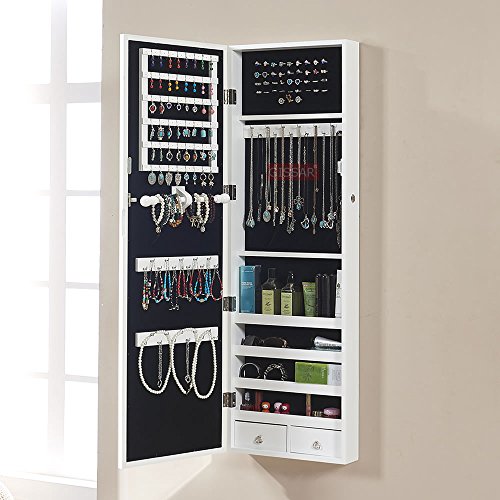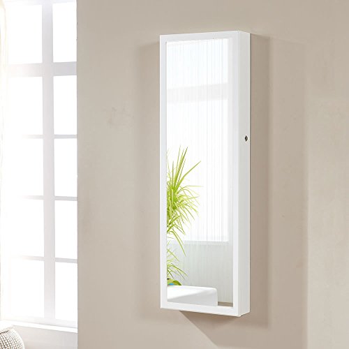 Wall Mount Mirror Jewelry Cabinet Armoire Storage Locking Jewelry Organizer, White