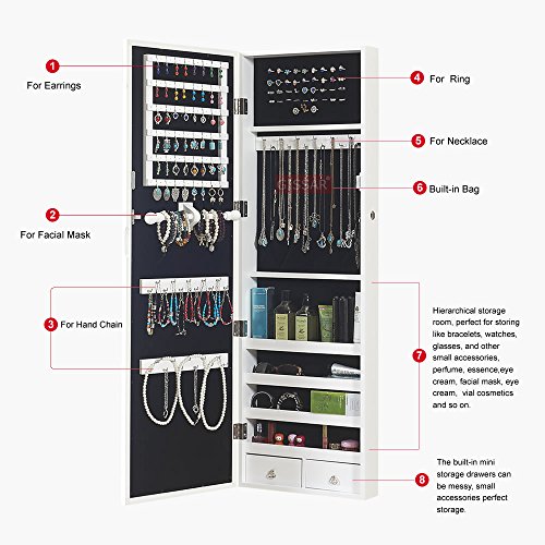 - The roomy space is specially designed to store all your necklaces, earrings, rings, bracelets, watches, hair ties, cosmetics and other accessories