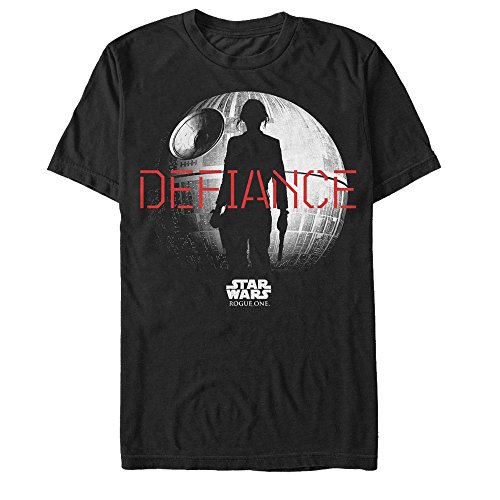 Studio : Fifth Sun Publisher : Fifth Sun Binding : Apparel Product Description Defy everyone's expectations and dress like a rebel with the Star Wars Rogue One Jyn Defiance Silhouette Black T-Shirt! A silhouette of the rebel hero, Jyn, is portrayed on a backdrop of the Death Star with "Defiance" displayed in sleek red text across the black Jyn shirt. 100% Cotton. 0