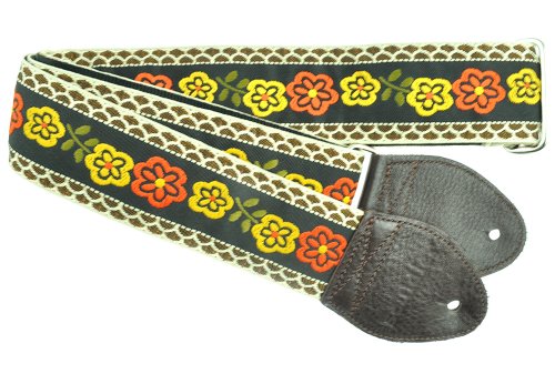 Souldier Custom GS0274BK04DB Handmade Marigold Guitar Strap, Black/Brown/Orange