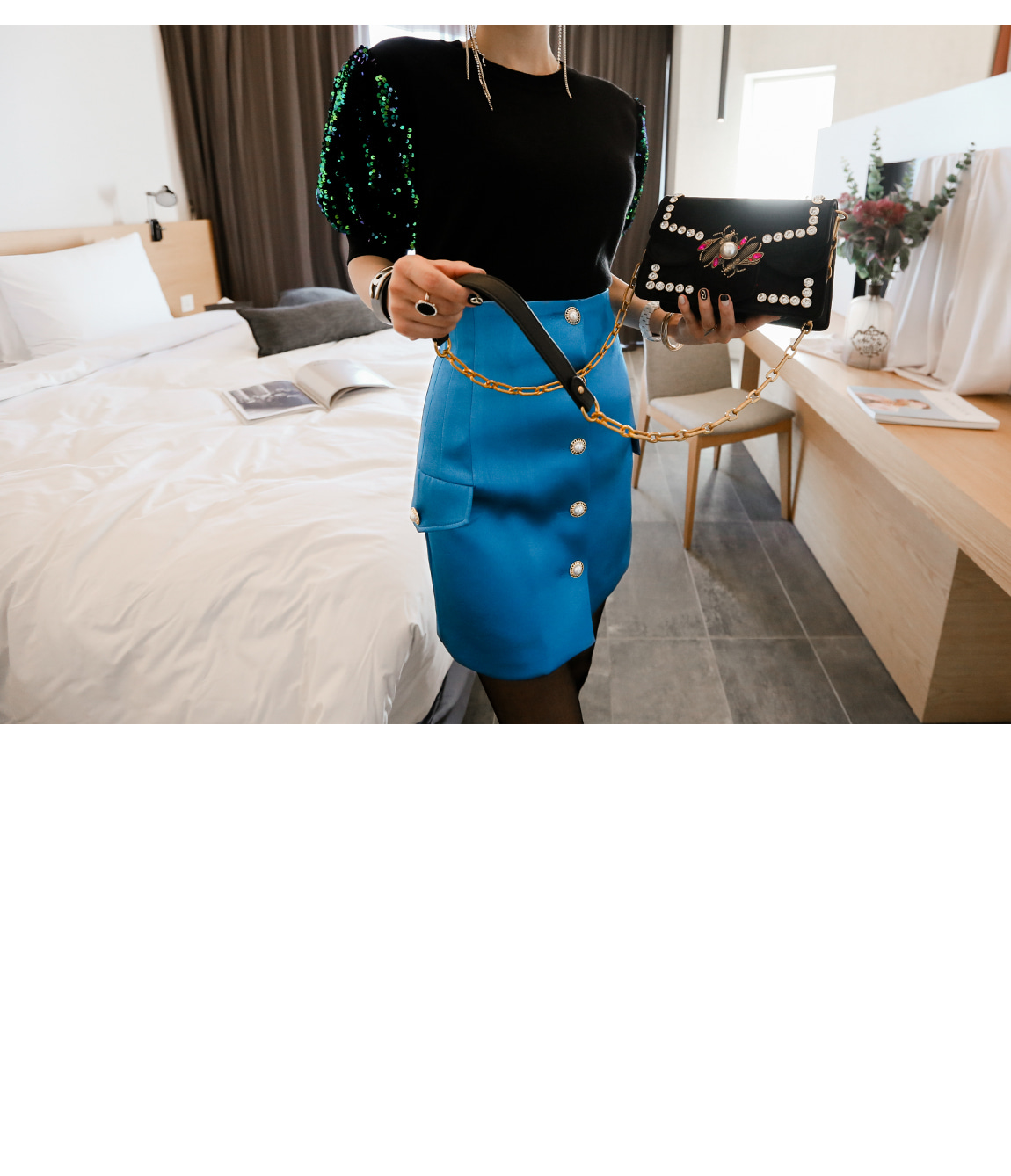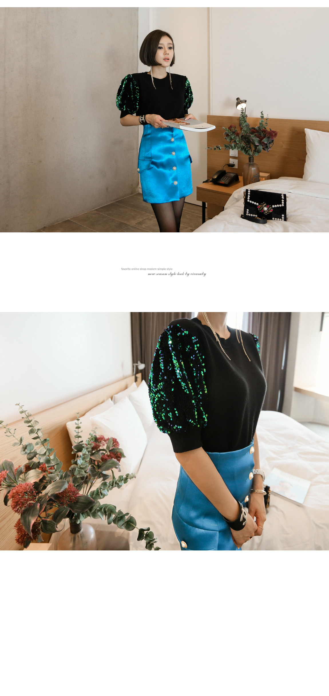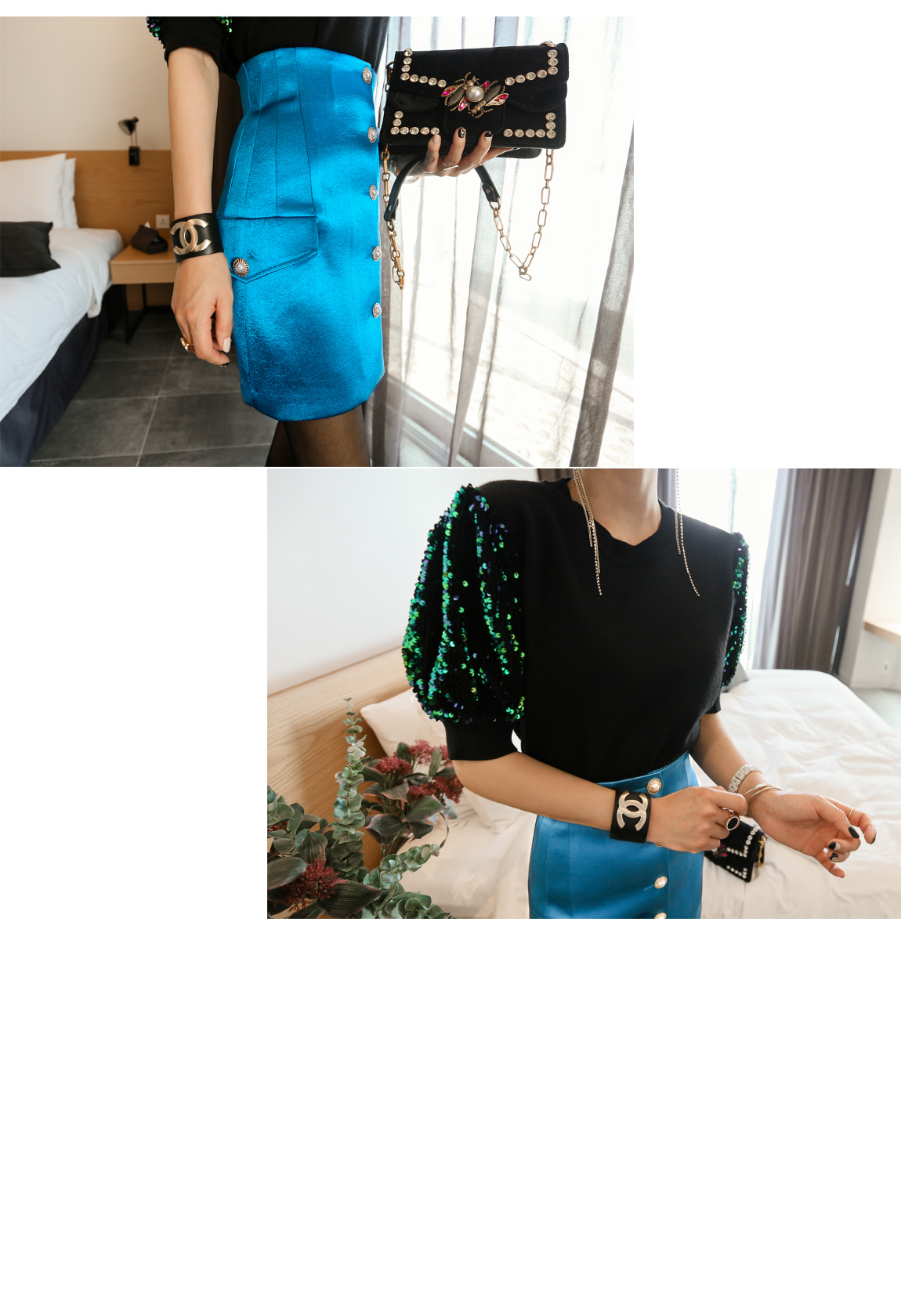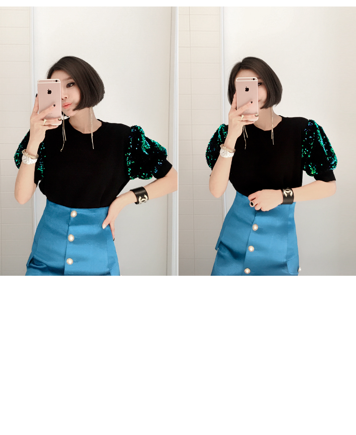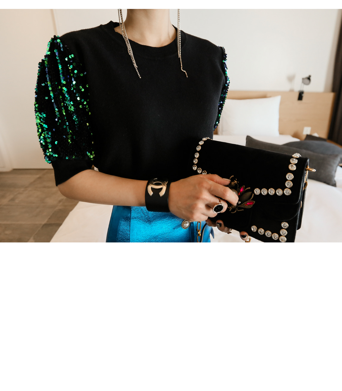 袖の部分のスパンコールのパターンに