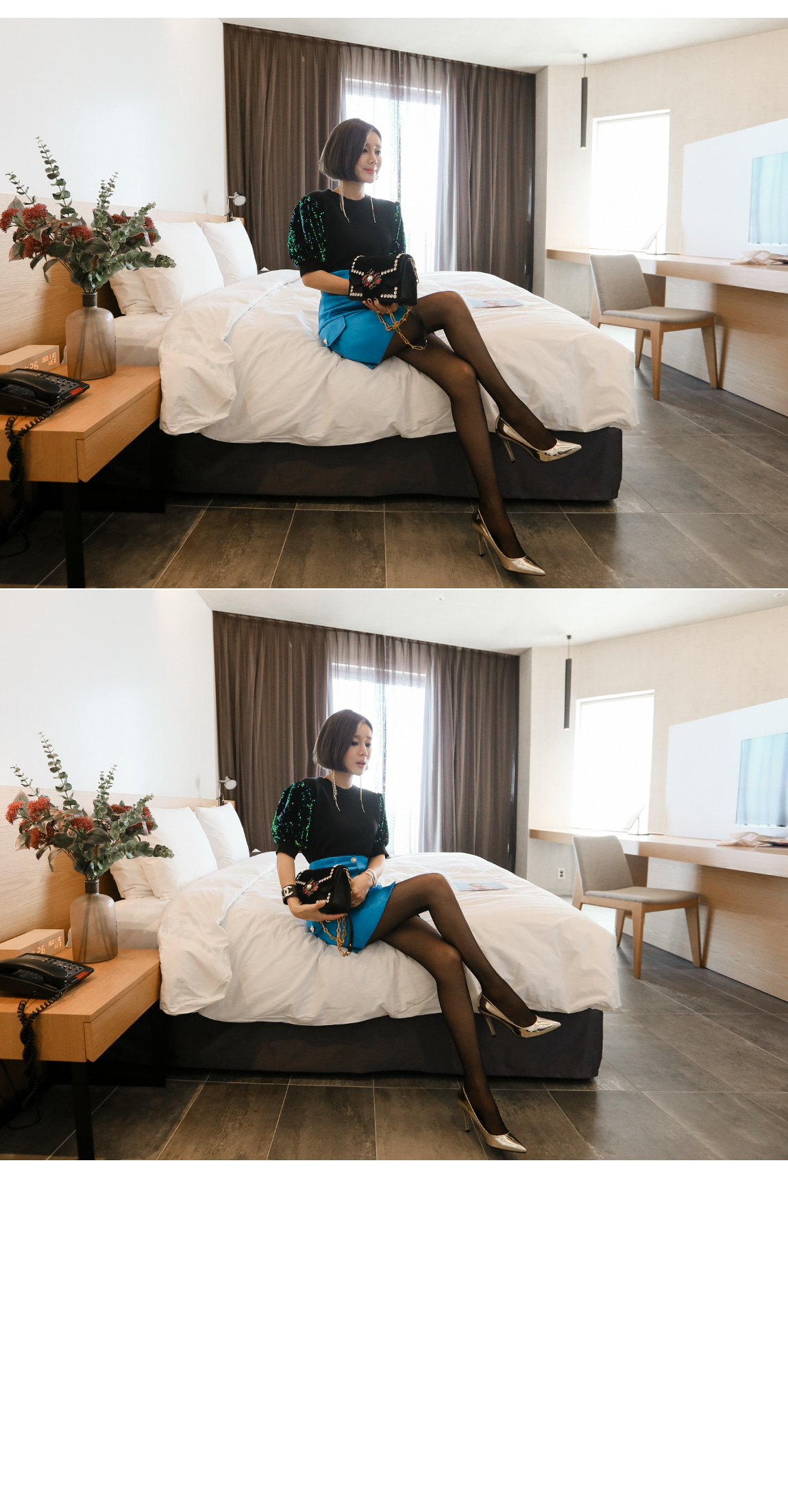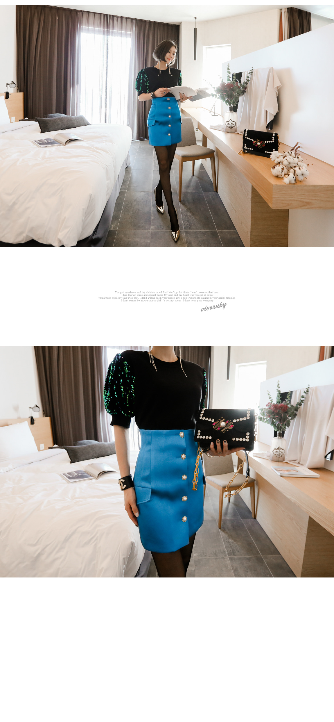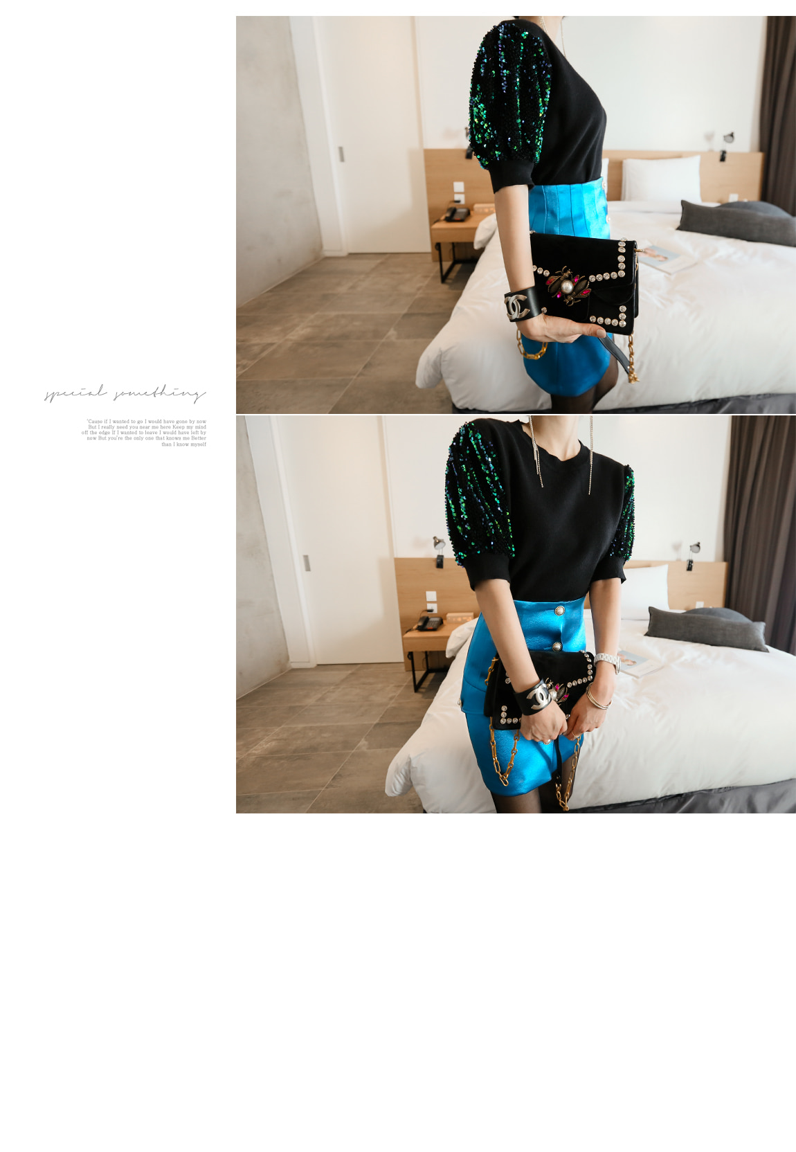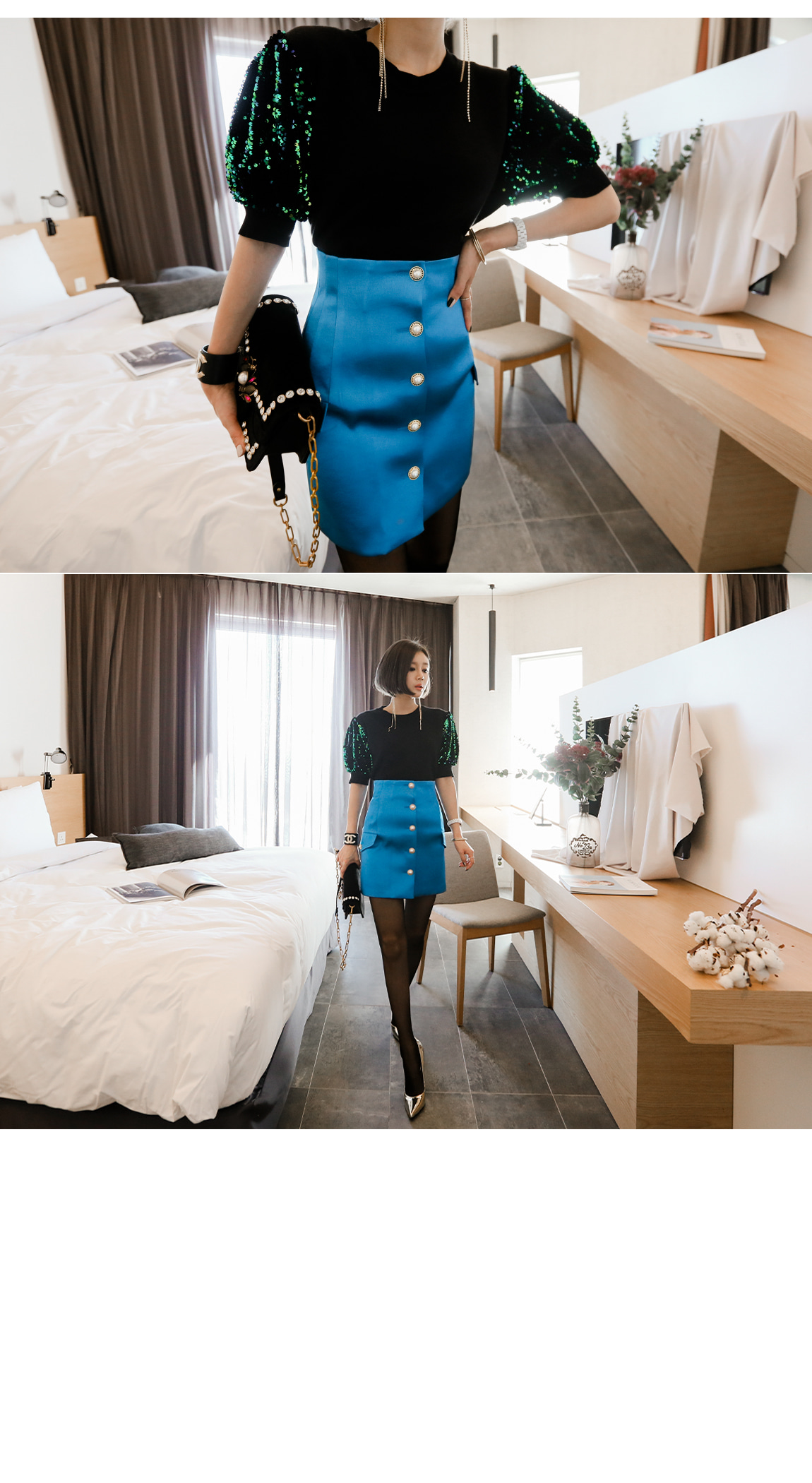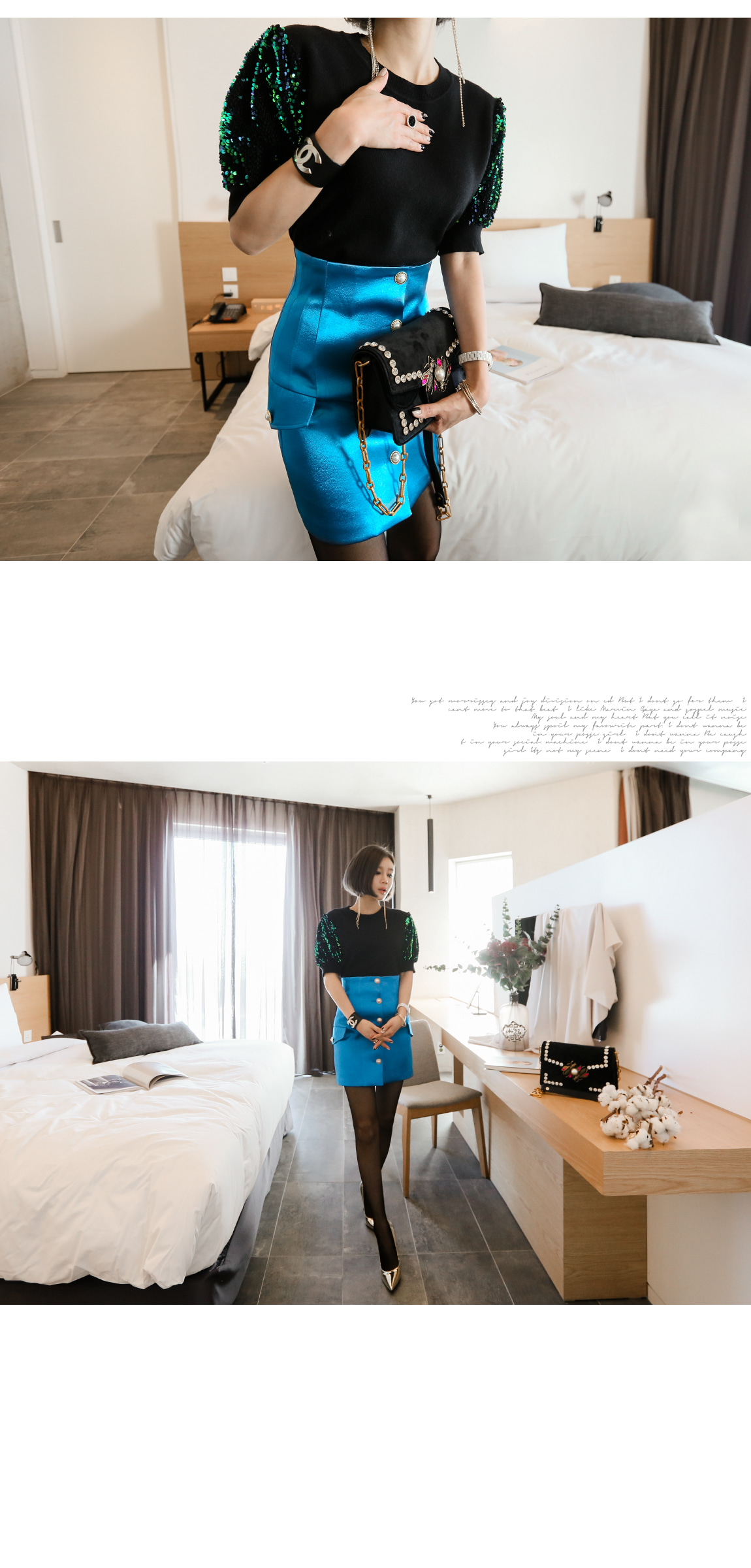 袖の部分のスパンコールのパターンに