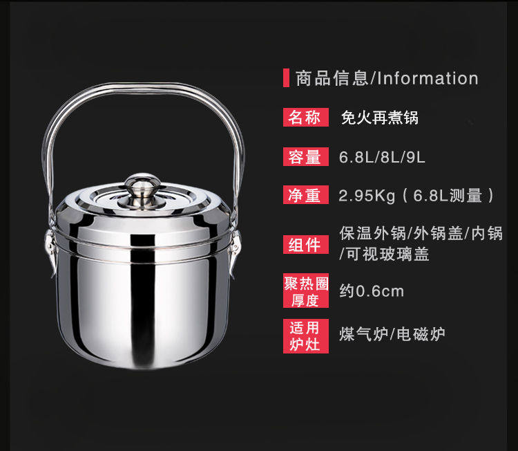 Baby parameters: 6.8L: inner pot - outer diameter: 25.5cm, inner diameter: 22.5cm.Polishing steel ring diameter: 18cm. Height (pot mouth → heat steel ring): 14cm. About 4.1 liters, it is recommended 2-4 people to use 8L: inner pot - outer diameter: 25.5cm, inner diameter: 22.5cm. Poly hot steel ring diameter: 20cm. Height (pot mouth → heat steel ring): 17cm. About 5.5 liters recommended 3-5 people to use, outside the pot for the drum. 9L: inner pot - outer diameter: 27.5cm, inner diameter: 24.5cm. Poly hot steel ring diameter: 20cm. Height (pot mouth → poly hot steel ring): 15.5cm. About 6 liters, recommended 4-7 people use