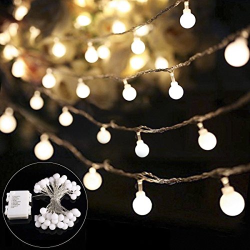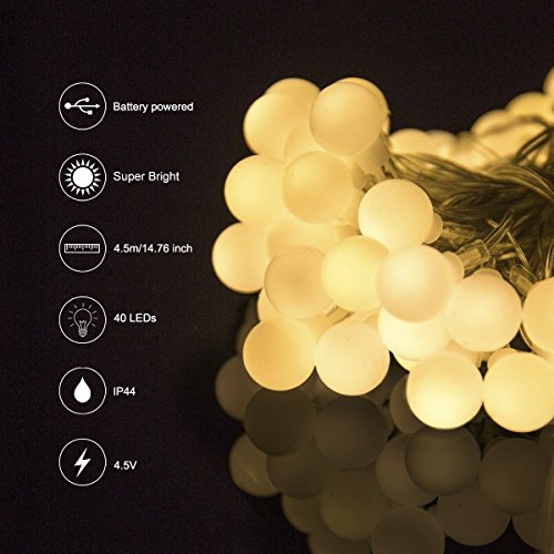 - 【40 Milky White Balls Decorative Light】Totally length 14.8ft/4.5m, diameter of each globe is 0.7 inch. Each globes are not replaceable which made of hard plastic that more durable than glass globes.
